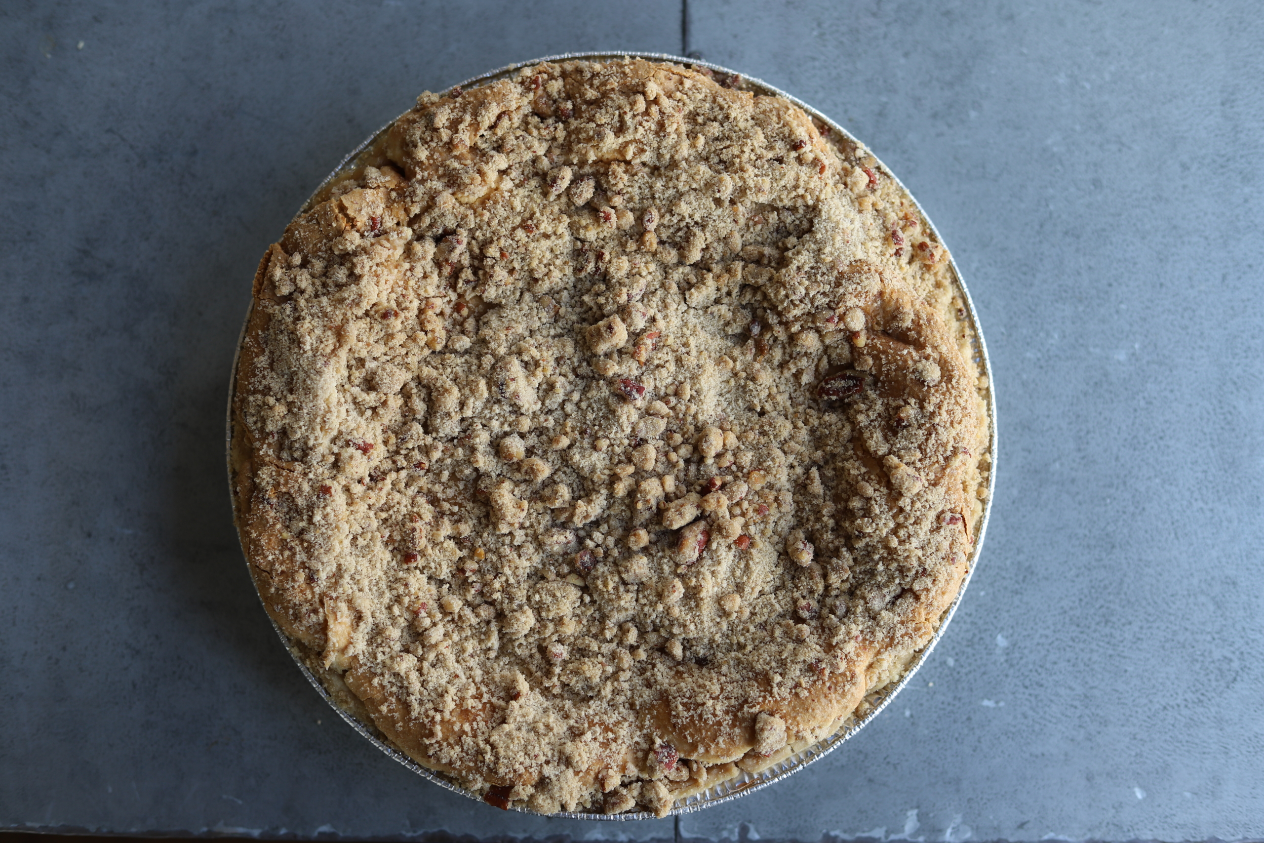 Delicious Sweet Cream & Apple Pie with a crumb topping.