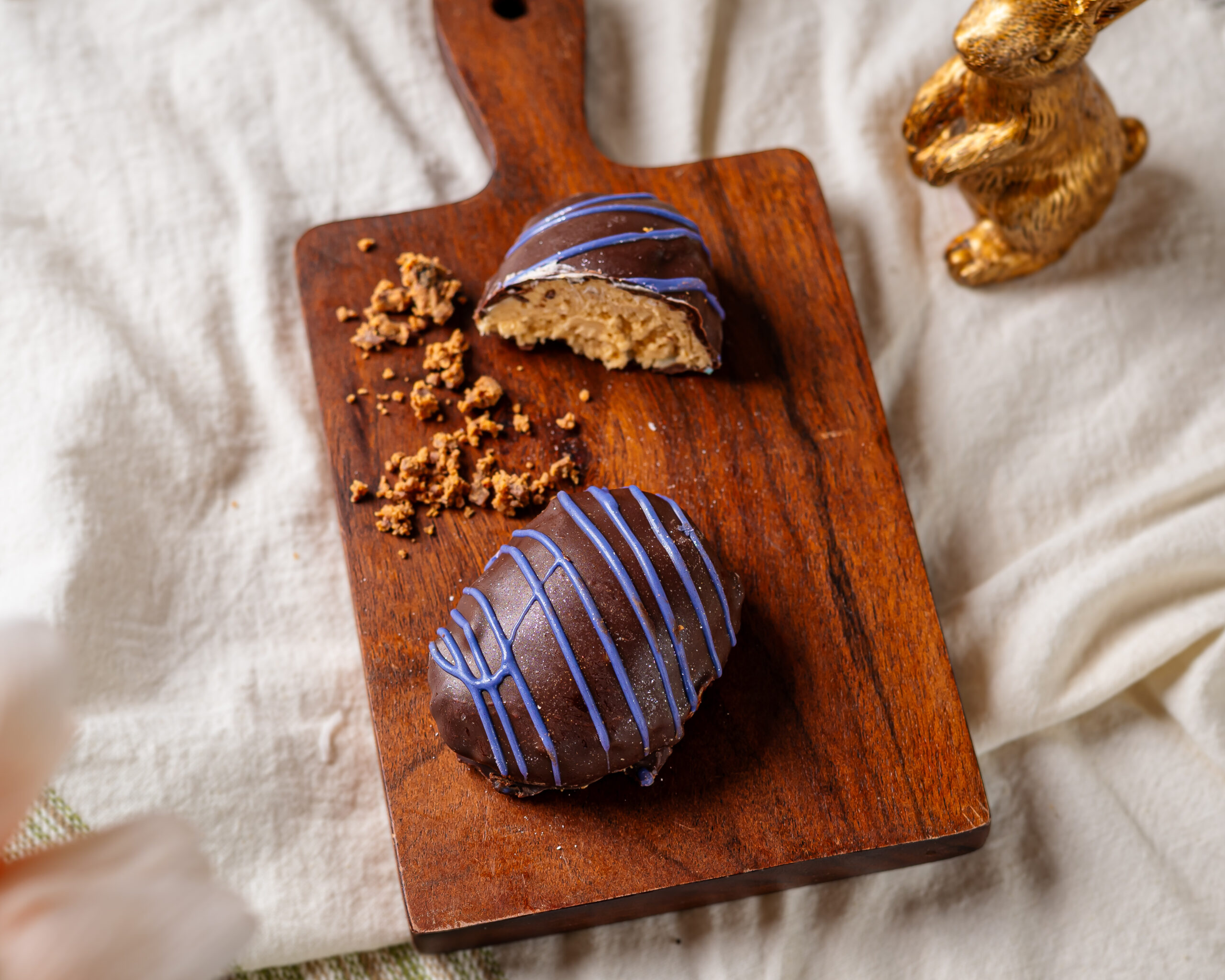 Chocolate covered eggs available in Peanut Butter Filled, Buttercream Filled, Coconut Creme Filled, Cookies & Cream