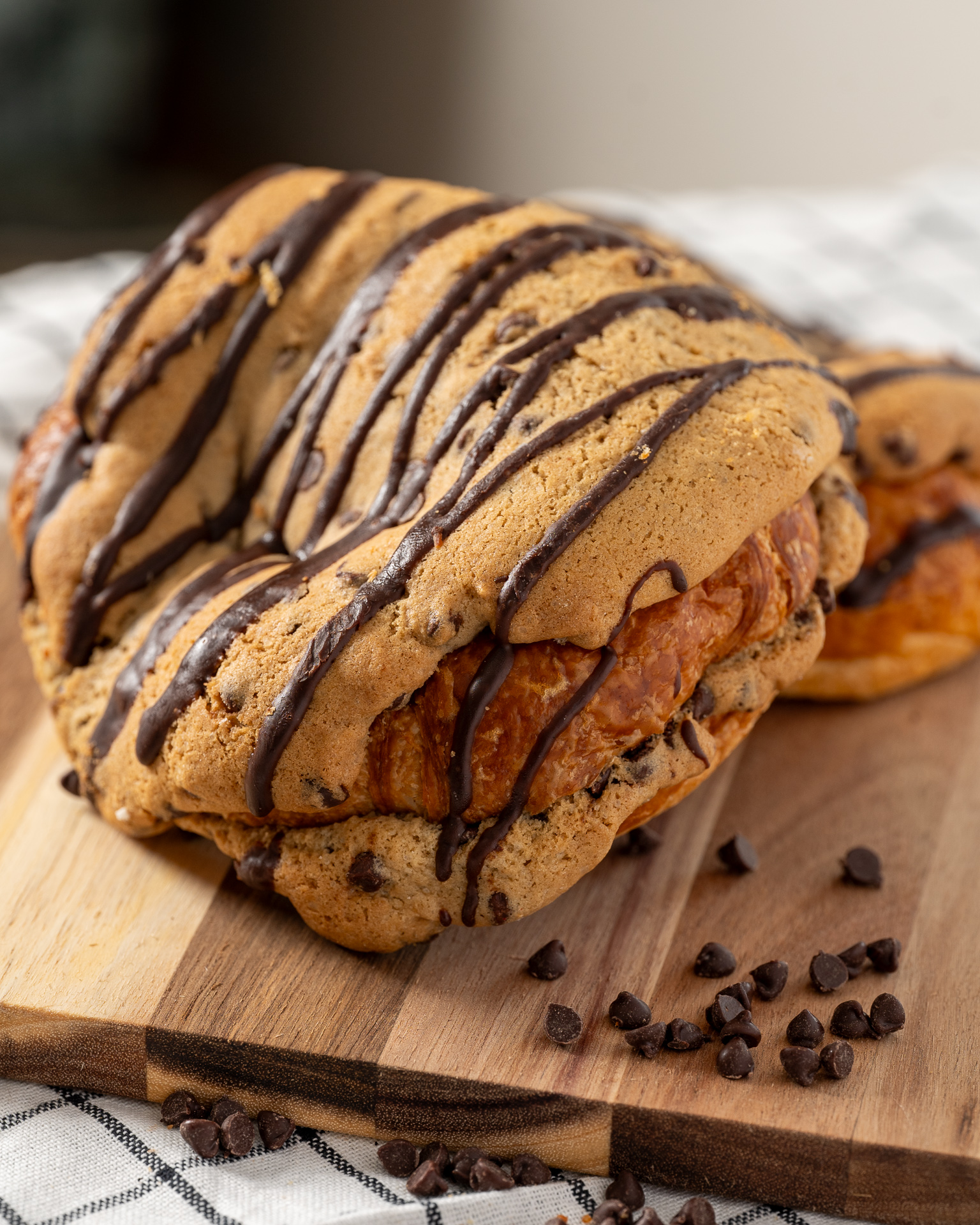 Buttery croissants stuffed with a chocolate chip cookie and topped with a chocolate chip cookie