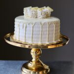 Lemon cake with blueberries baked into each layer. Covered in lemon frosting and topped with blueberries.