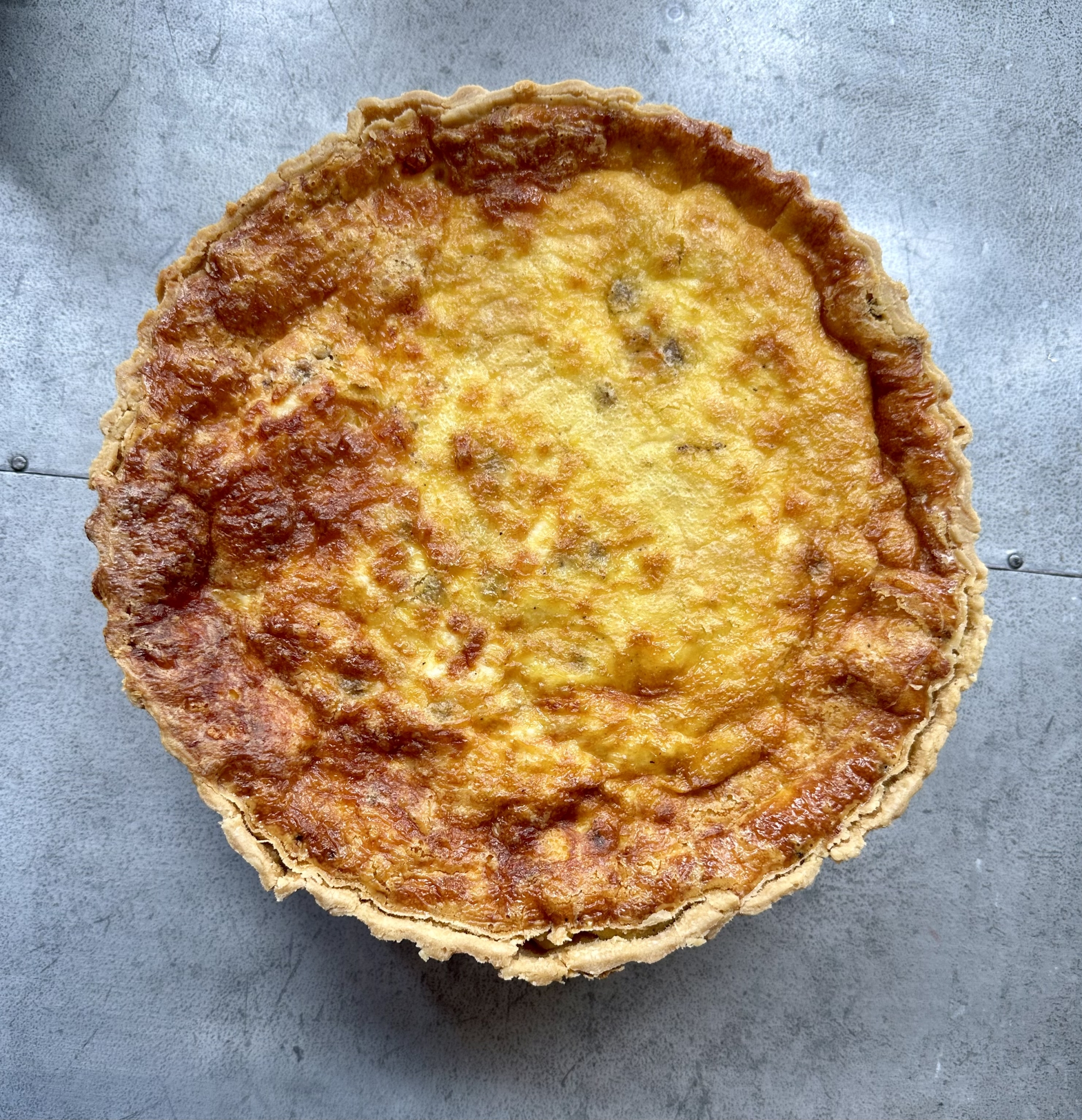 10″ Quiche with a flaky homemade crust baked to perfection with a classic seafood baked quiche.